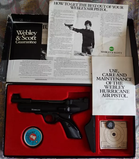 1977s collectable .177/4.5mm Hurricane air target pistol/Box/Manuel/old stock new item