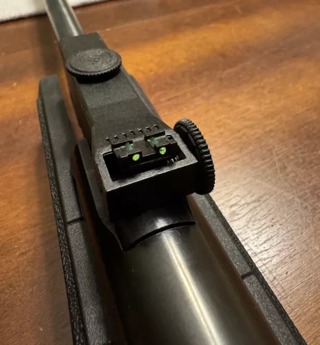 Lightly used (100 rounds through it), high velocity (1100 FPS), Umarex Prymex air rifle in .177 caliber. Gas Piston break barrel with iron sights, windage and elevation adjustable.