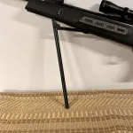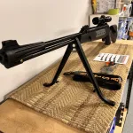Has a very high velocity 1000fps., very accurate as it has a separate cocking lever/arm under the barrel. (see pic.) Fixed barrel remains still in cocking process.