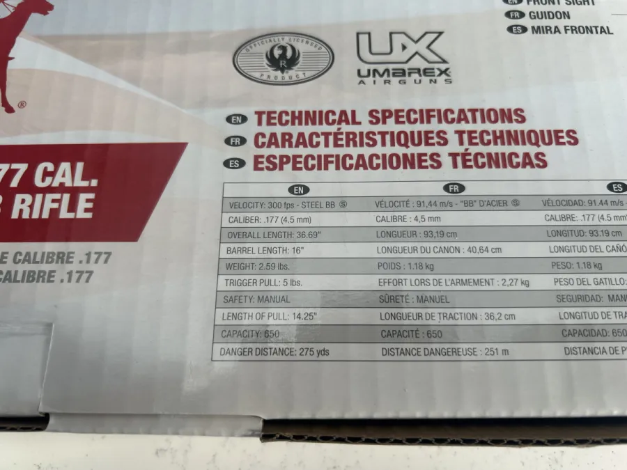 For sale is a Marlin lever action BB gun made by Umarex. Uses .177 caliber BBs and shoots up to 300FPS. 650 shot capacity.