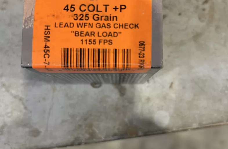 HSM 325 grain bearload surplus to my needs. .45 long colt, 20 rounds. I have .45 auto as well
