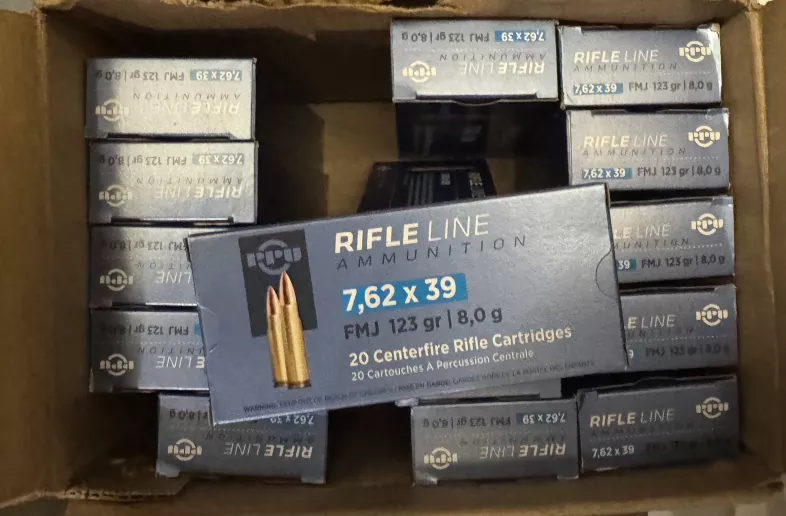 PPU 7.62x39 123 GR FMJ 309 rounds (15 boxes)