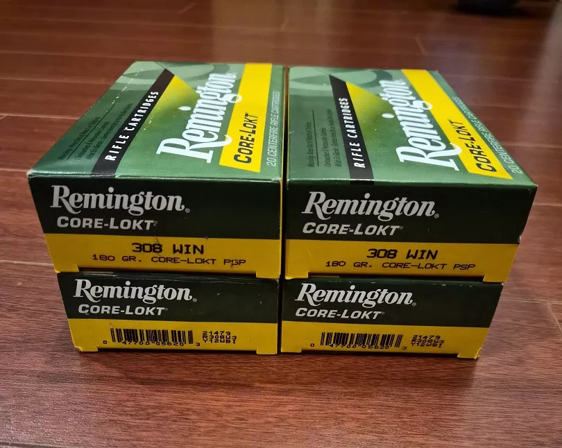4 boxes of Remington CORE-LOKT 308 Win 180gr PSP. Total 80 rounds.