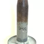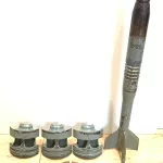 Projectile consists of 3 original unfired sabots, an unfired but scrap recovered penetrator & the only replica piece of this cartridge, the thin copper drive band that holds the sabots together. The dart was manufactured at factory code 33, batch number 28 in the year of 1981 (33-28-81). The projectile had the steel nose unscrewed and the Tungsten core removed via a torch, leaving the nose of the projectile with its paint burned off and the core missing. Nose still unscrews just fine. All the remaining paint is original to the projectile.