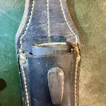 Includes the original blued steel scabbard and a period wartime leather frog. Stitching, rivets, and leather construction are consistent with German Army frogs produced circa 1940–1942. The frog stamp is partially worn from age, but construction characteristics confirm it is not a postwar reproduction.