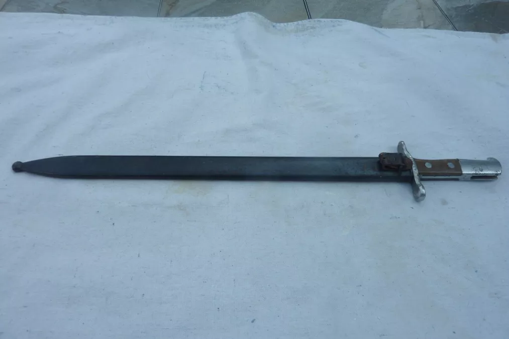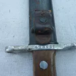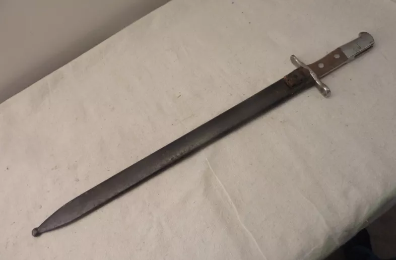 Sawback sword bayonet for use on the 7.5 mm. Schmidt-Rubin M1911 carbine and the M1931 Short Rifle (K31).