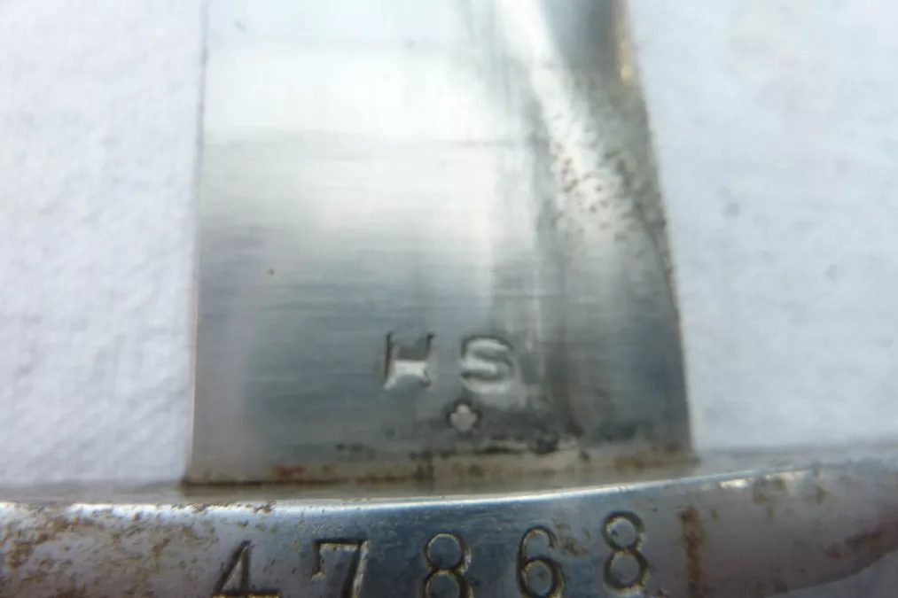 The right side of the blade has the initials HS stamped immediately in front of the guard for the Maker Hans Steimer