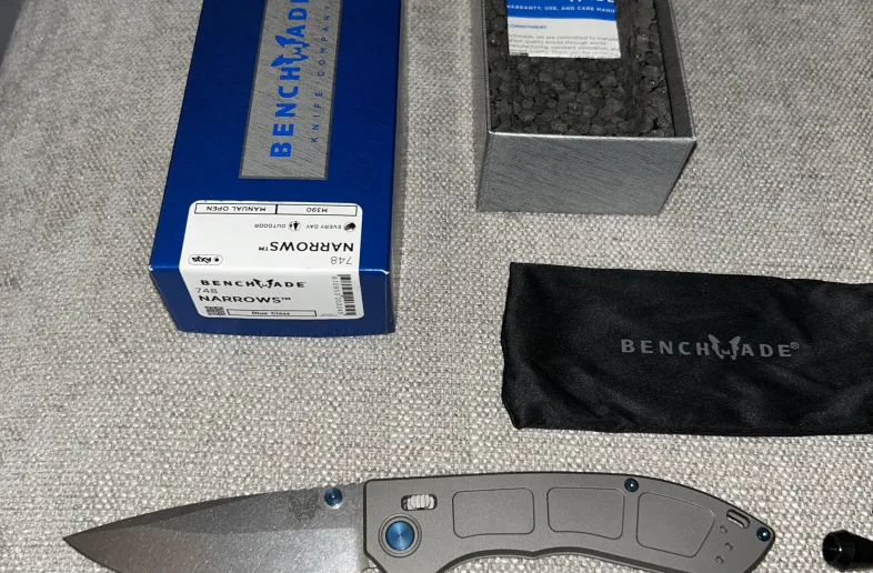 Selling my Benchmade Narrows grey titanium drop point (748). Purchased from Cabelas earlier this year (can show proof) knife is virtually unused, mint condition.