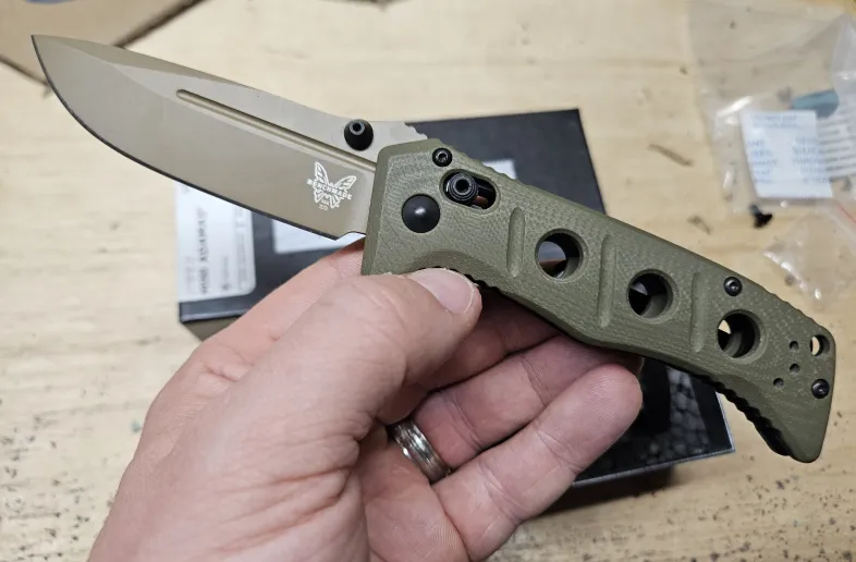 Brand new Benchmade Mini Adamas in CPM Cruwear. OD green habdle and FDE blade finish.