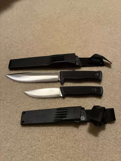 Brand new A1 Army Survival knife VG-10 steel. Comes with Zytel sheath and dangler leather sheath. Picture compares thickness to Swiss Army knife and Fallkniven F1 Pilot knife. Shipping at buyer’s expense or local pick up in Calgary, AB,