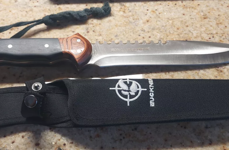 14" Buckner hunting knife, Pakka" wood G-10 handle, Bowie design, excellent condition....40$