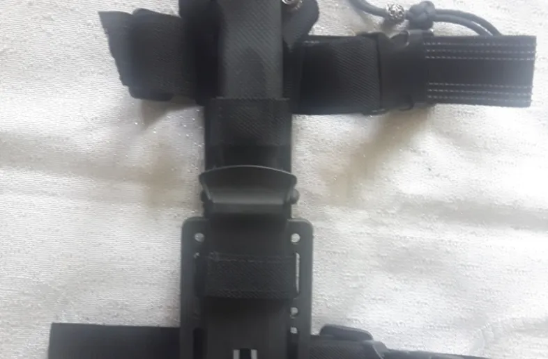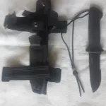 The sheath is MOLLE compatible and includes a blade sharpener.