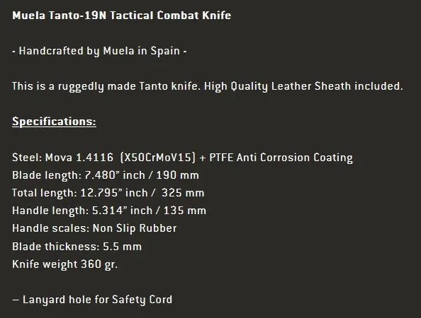 New MUELA Tanto-19N Tactical Hunting Combat SHTF Stainless Knife - Spain