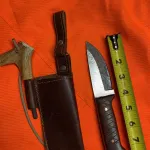 Damascus blade w drop leather sheath and fire iron that I made myself (deer antler)