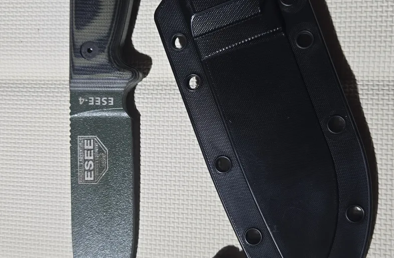 Brand New ESEE -4, OD Green with TKC G-10 Black/Green Extended Scales and a BladeTech Clip.