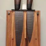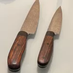 Damasteel two Chef's knife set - new. Blade length - 7" and 5" hardeness 62 HRC. Handles from Ebony and Ironwood. Free stand made of Oak. 900$ free shipping.