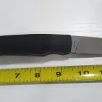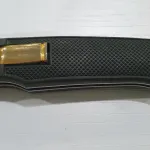 Beretta Seki Japan 9mm bullet release knife. S.S. blasted finish drop point blade with "Beretta 3 Arrow" etch and nail nick. Sharp factory edge. Textured rubberized handles with lanyard hole. The bullet is the lock release. Blade 3 ", Closed 4 1/2 ", OAL 7 1/2". Slight "lock rock" -no wobble -- minor handling scuffs only. Will ship at buyer expense ($20 tracked Canada Post).