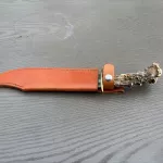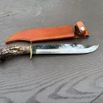 Another of my custom Bowie collection. This is a beast but feels great in the hand, is well balanced. Excellent "as new" condition. Beautiful leather sheath. Spectacular antler handle. OAL 15", blade 9 3/4". Now $350 shipped. Pics say it all. No trades. See my other ads - pkg deal possible.