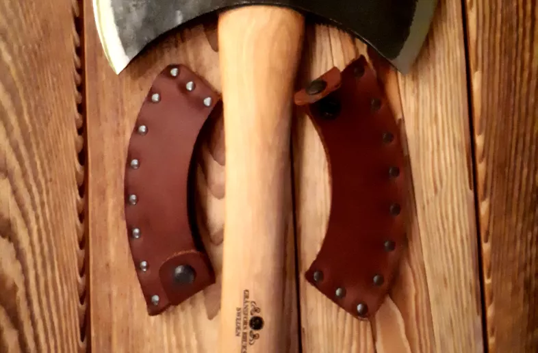 This is the long-handle 35"(89cm) version of the legendary Gränsfors Double Bit Axe—hand-forged in Sweden with symmetrical bits and a perfect balance for timber work, throwing, or display. Comes with original leather sheath.