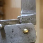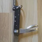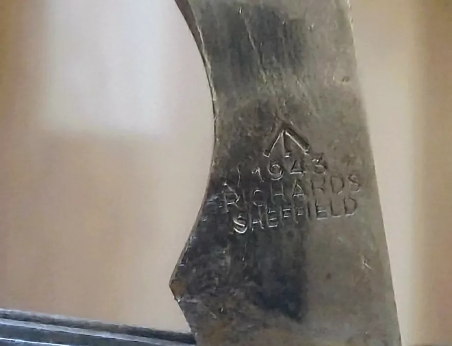 One (1) stamped "1943 Richards Sheffield" with Broadhead, Bakelite handles, very tip of knife blade broken off but otherwise nice condition.