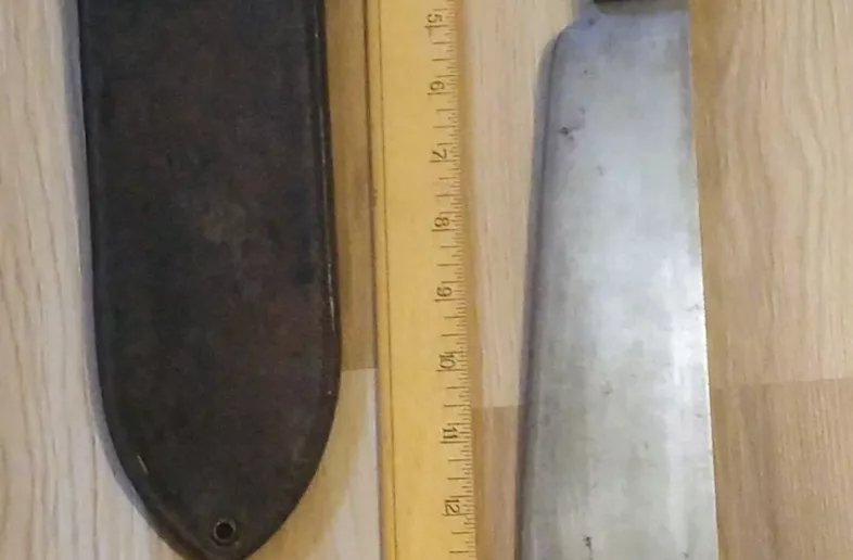 This bolo knife is approximately 16 1/2" in overall length with a blade measuring approximately 11 1/2".
