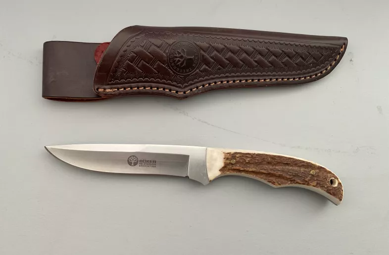 - Hand-picked **stag horn**, 2 brass mosaic pins