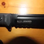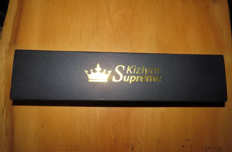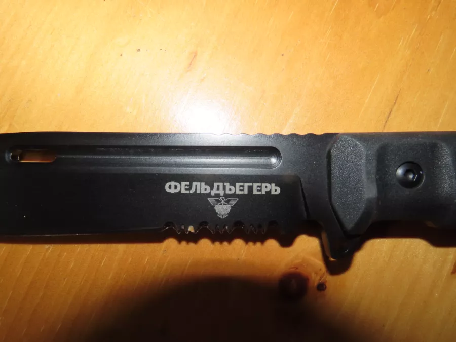Please go to, www.kizlyarsupreme.com Look under tactical knives. There's a description and video on this and many other of their quality knives. Brand new. Both knife and case are high quality through and through. Even the rigid box is quality with it's magnetic closure. Made in Russia by KIZLYAR and comes with a lifetime warranty. Never carried, used or sharpened. Warranty cards inside.
