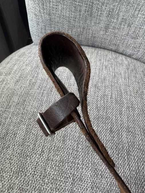 Swedish M96 and M38 rifle bayonet sheath frog, the overall condition is very good and the leather shows no drying or cracking.
