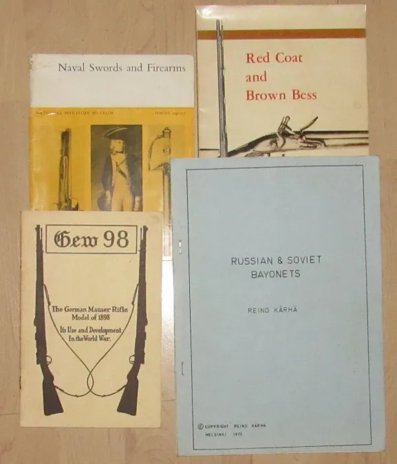 Selection of soft cover brochures, pamphlets, gun instructions, bayonets, ammunition, miniatures etc.