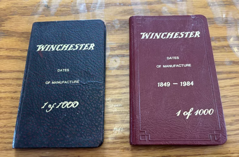 Winchester dates of manufacture by George madis one red one black size 3 1/2 in by 5 1/2 in excellent condition