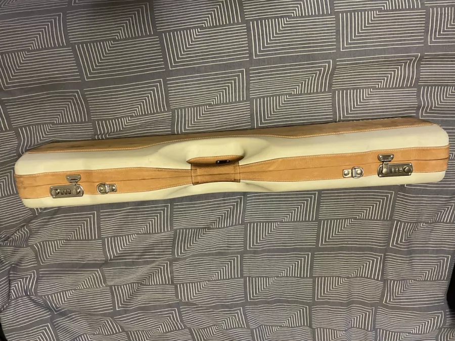 Krieghoff leather trimmed compact shotgun case. holds one full gun.couple little marks on it. nothing major.inside is perfect comes with carrying strap as well. buyer is responsible for shipping.