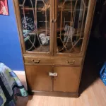 Cabinet with glass display area and soft fabric covered drawer and locking storage underneath with shelf ..trade for a box of ammo lol