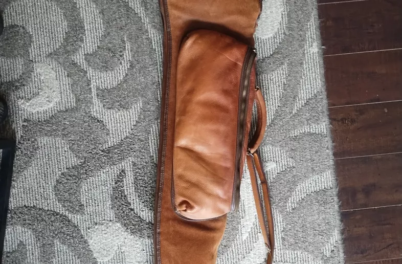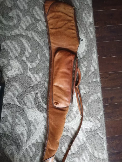 Vintage Edwards Day gun case made in a combination of suede leather and fine leather. Zippers work well. Storage pocket and sling in good shape too. Fully lined in thick synthetic fur. 80$ shipped. Peter