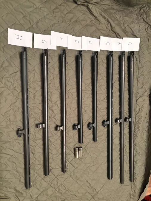 NO TRADES PLEASE. A through G are all 12 gauge 2 3/4 and 3 inch chamber. G is a 12 gauge ultra mag 2 3/4 to 3.5 inch chamber.