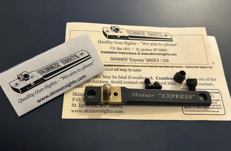 Used Skinner Express peep sight M95EX/336 black and gold. Fits Marlin 1895 and 336 models.