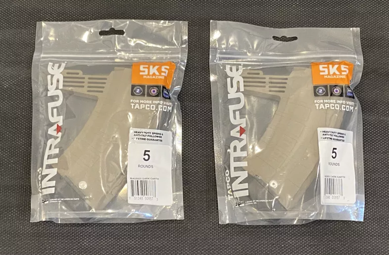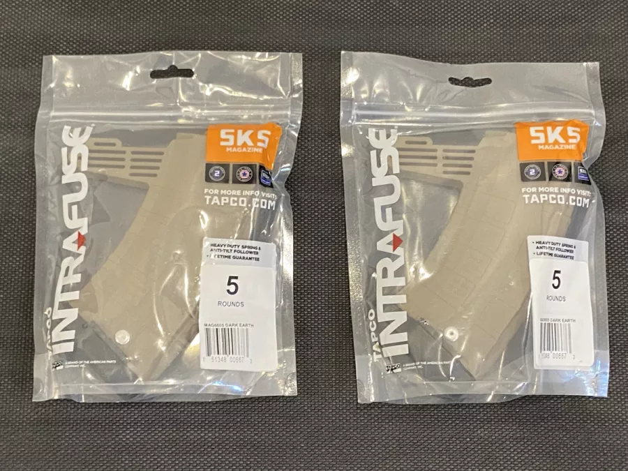 Tapco Intrafuse SKS 7.62x39 20/5 round magazines. FDE Colour. Local deals preferred but willing to ship. PAL required.