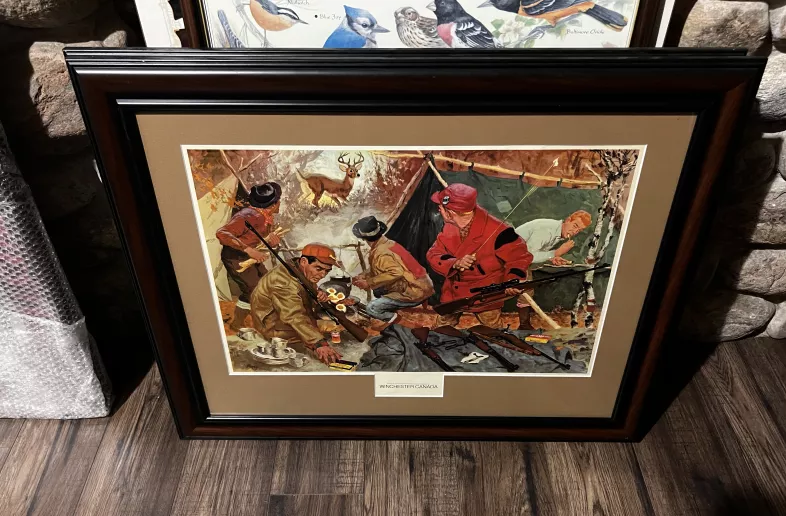 I have for sale two very rare Winchester hunting prints. These prints were taken from the original art at the Winchester museum and presented to Winchester Canada. The prints were displayed in the executive offices of Winchester in Coburg Ontario. They were professionally mounted and still exhibit great color. $500 each or take both and I can do a bit better.
