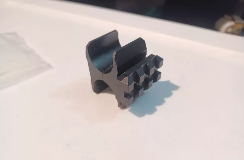 Made by S&J Hardware. Fits many different 12 gauge shotguns. Has a short picatinny rail for mounting a flashlight, sling swivel, laser etc. The rail can be on either side. Made in Canada. https://canadafirstammo.ca/product/s-j-hardware-shotgun-mag-tube-clamp-with-light-rail/