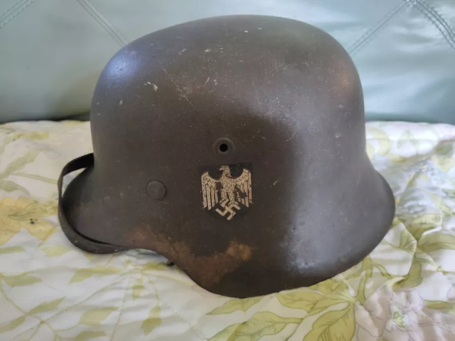 Decided to put up my original untouched M42 Heer helmet up for sale beautiful original condition two names in the liner, large size 66 has an unusual pad in the bottom probably for added comfort it looks very old is removable. There is some light surface rust on the one side but nothing major looking for 1600$ on this one
