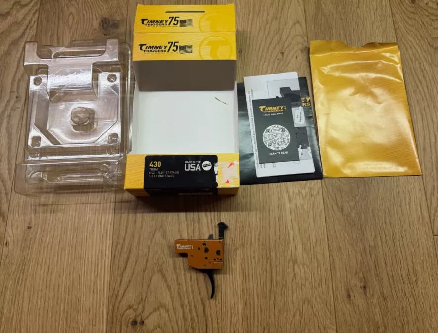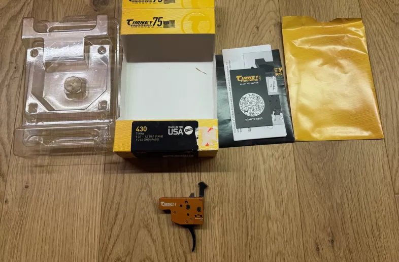 Timney Tikka Two Stage Trigger. Comes with box and manual. Test fitted by me, hasn't seen a single round.
