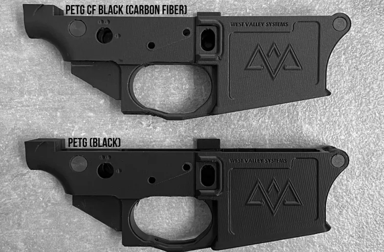 Made from high quality PETG polyester with the option of Carbon Fiber infused PETG. - Compatible with AR15 grips, triggers, mag release, safety, mags.