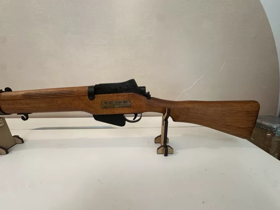 Swift Training Rifle S.R. Mk. III (brass plate: “THE SWIFT TRAINING RIFLE 9B/2030 S.R. MK. III 12921”). Used for wartime training during ammo shortages. Excellent display/collector piece.