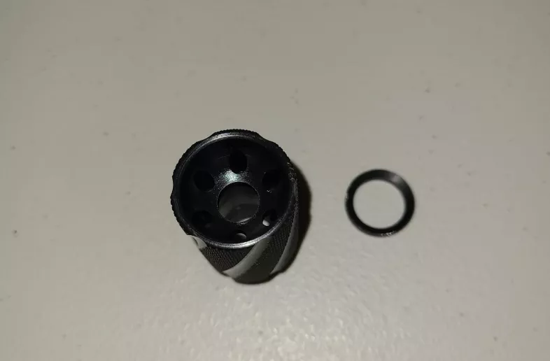 Muzzle Brake + crush washer, 30 group caliber ( 7.62, 308......), threads 5/8"-24. New, never used