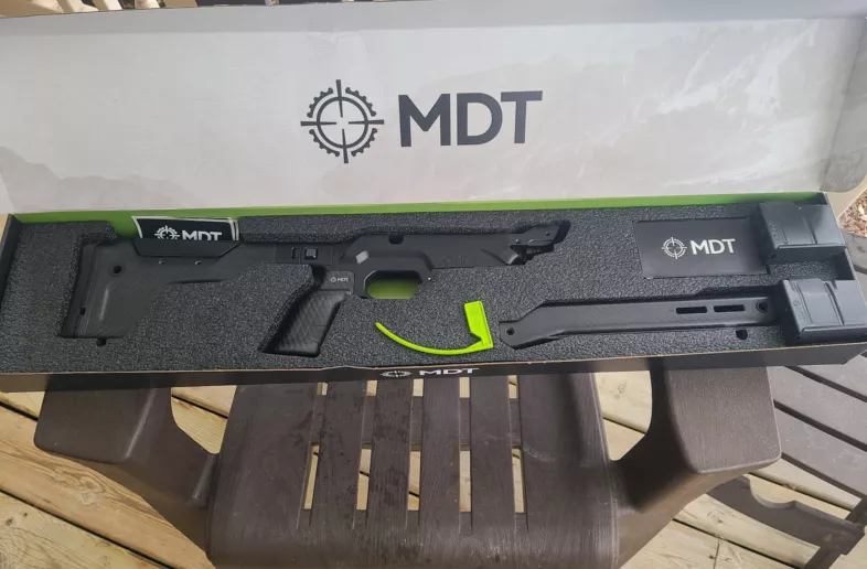 MDT hnt26 chasis with arca and folder. Purchased to bridge the gap for hunting season while I was waiting on my Kroseg precision stock. Minor handling marks, pictured, from arca clamp.