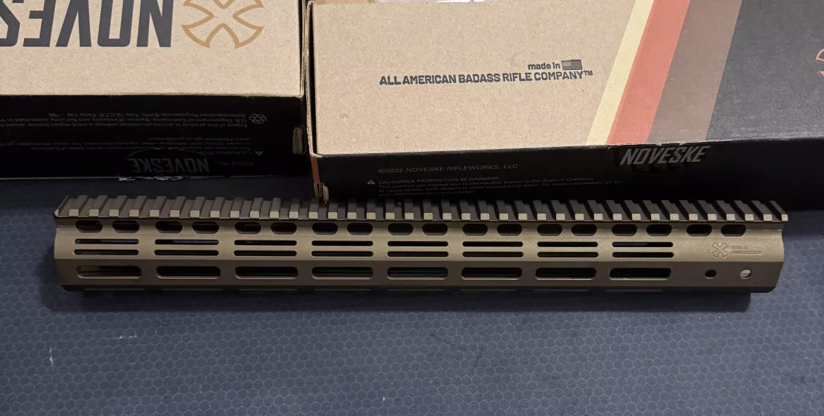 Like new Noveske 15 “ handguard professionally Cerakote - Burnt Bronze. Never seen action. Comes with all factory hardware and box. Low ball offers will be ignored.