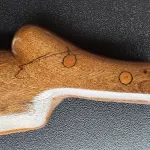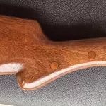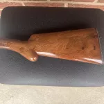 This stock is from a 1947 FN Belgian A5. The stock shows repairs in the wrist area. The inletting is for a shallow tang design.