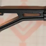 Stock adapter and folding stock mechanism manufactured from 6061 aluminum and finished in flat black anodize. Buttstock is manufactured from glass reinforced nylon, this stock is not only strong, it is more comfortable to shoot in extreme cold or heat than an aluminum stock.