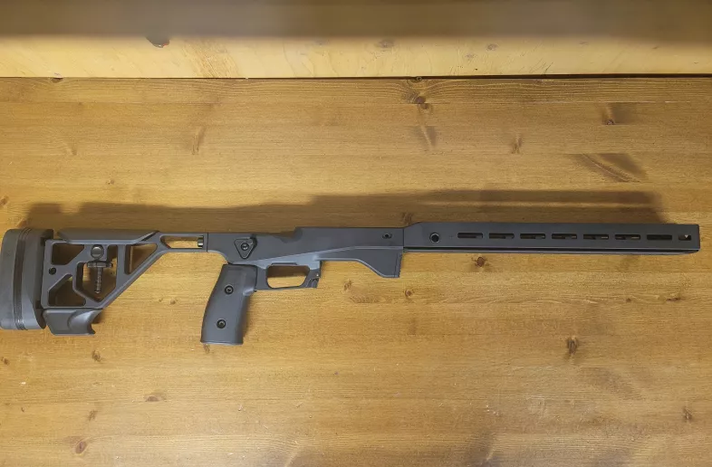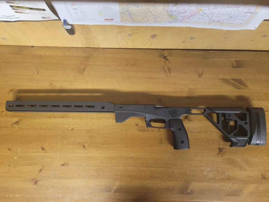 Brand new never used factory t3x chassis from ace target model. Took it out of the box, removed barreled action, took pictures, put back in box. Never fielded, tested or put in gun safe, no scratches or blemishes. Comes with action screws, arca rail, thumb shelf, as it would come from tikka. Fits ctr / arctic / upr magazines, easily converted to single stack t3x magazines or even t1x magazines. Appears to be completely ambidextrous, removal of safety notch plug would be required to convert to left hand bolt orientation - see pictures. $950 shipped.