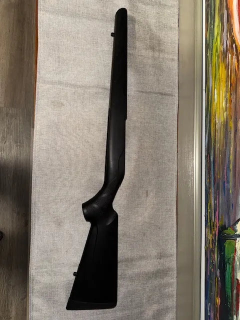Tikka T3 Stock in excellent condition. Was removed from the rifle shortly after purchase and replaced with a walnut stock. Original aluminum recoil lug has been replaced with a steel lug purchased from Atlasworxs.