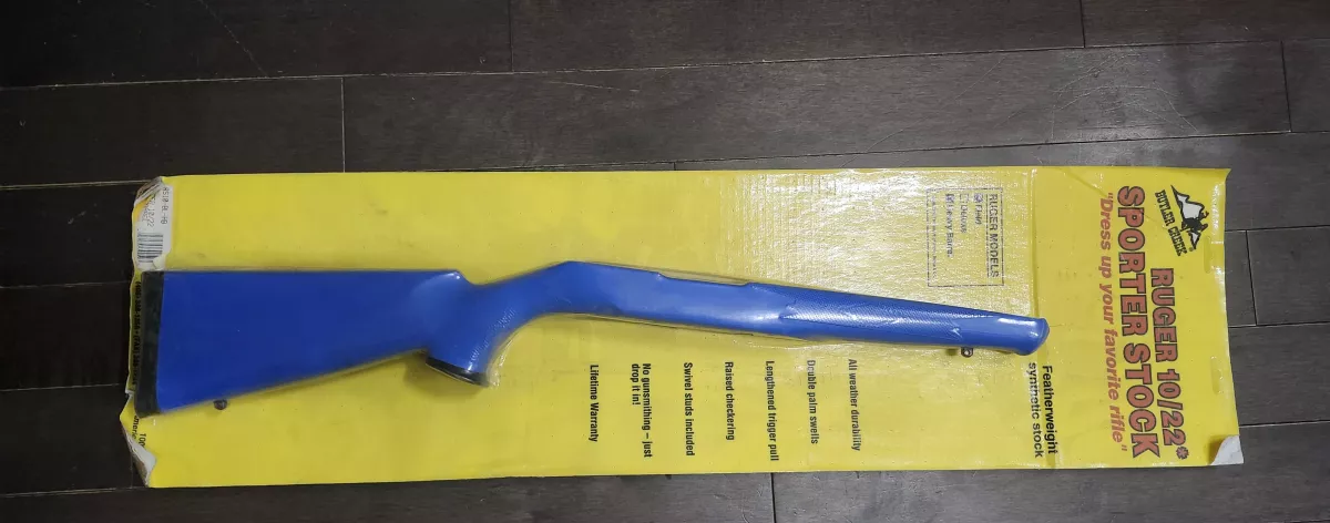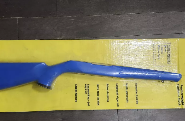 I have a brand new in package ruger 10/22 stock in blue, lighter than wood, and you don't have to worry about scratching up your nice wood stock